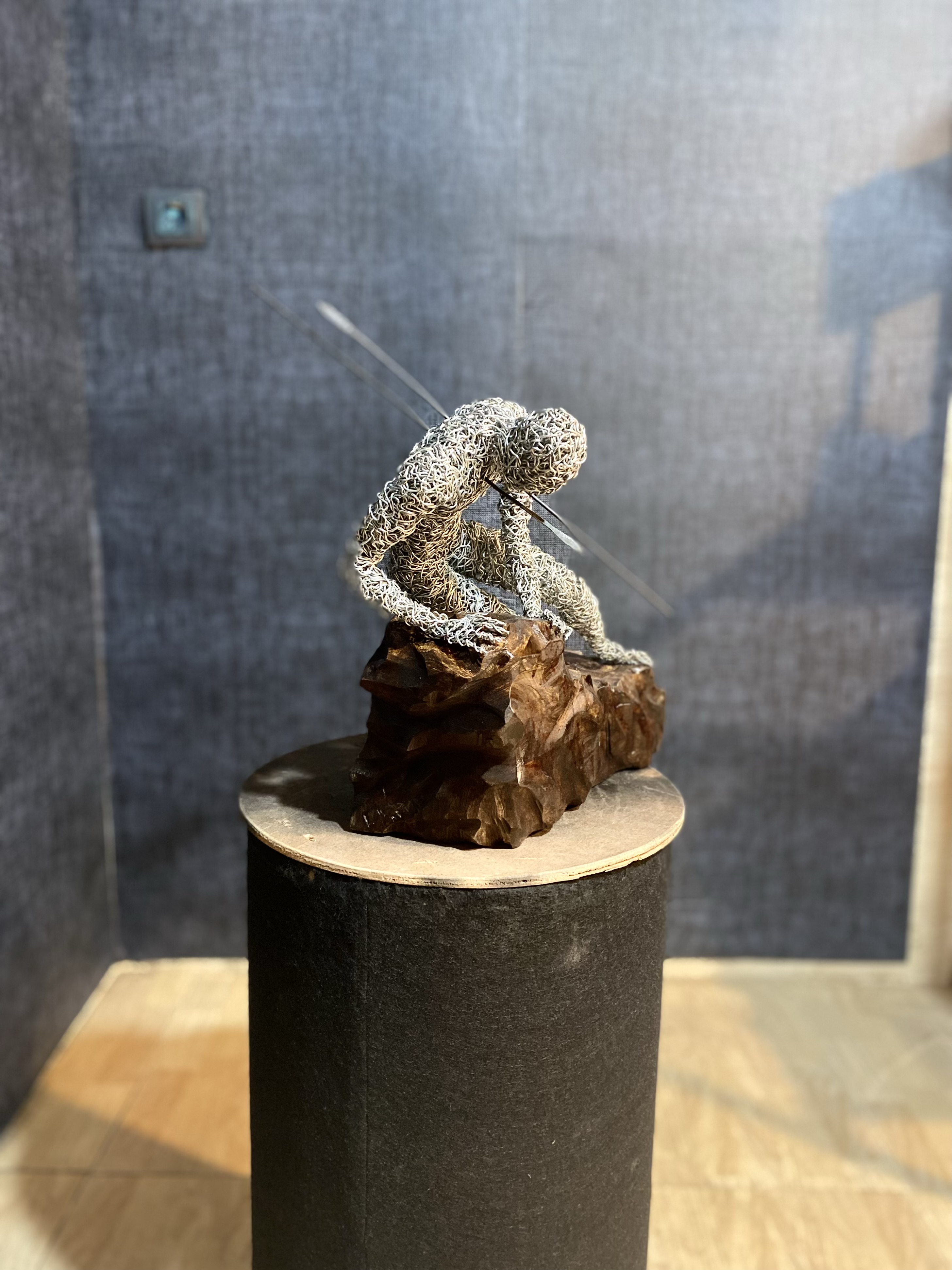 نیزه های برعکسی که در تن مجسمه وجود دارد نشانه آسیبهایی است که هم از داخل و هم از خارج بر پیکر خسته ایران وارد آمده .و ایران در شکل انسانی خسته اما پرشکوه در حال برخاستن است