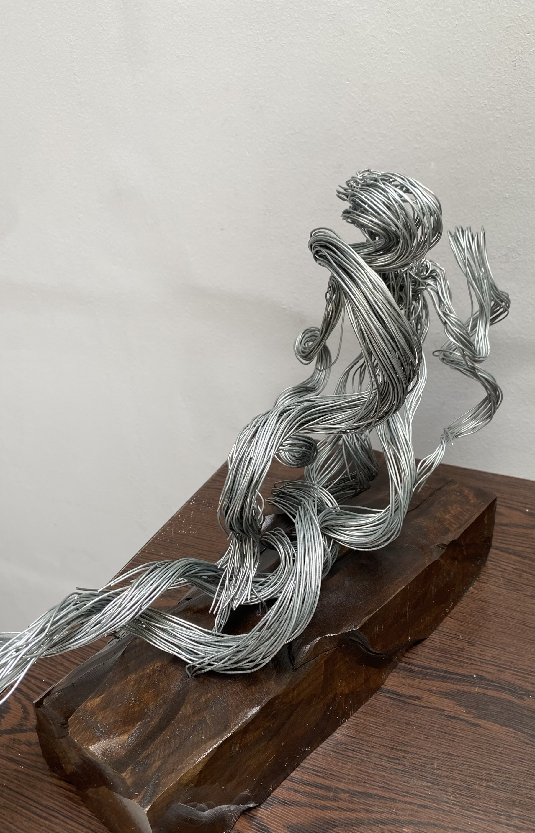 یک شب سبک جدیدی در خلق مجسمه هام به ذهنم رسید. مثل بادی که در خیالاتم می وزید و شکل میگرفت… سیم توی دستم خودبخود تبدیل شد به باد…