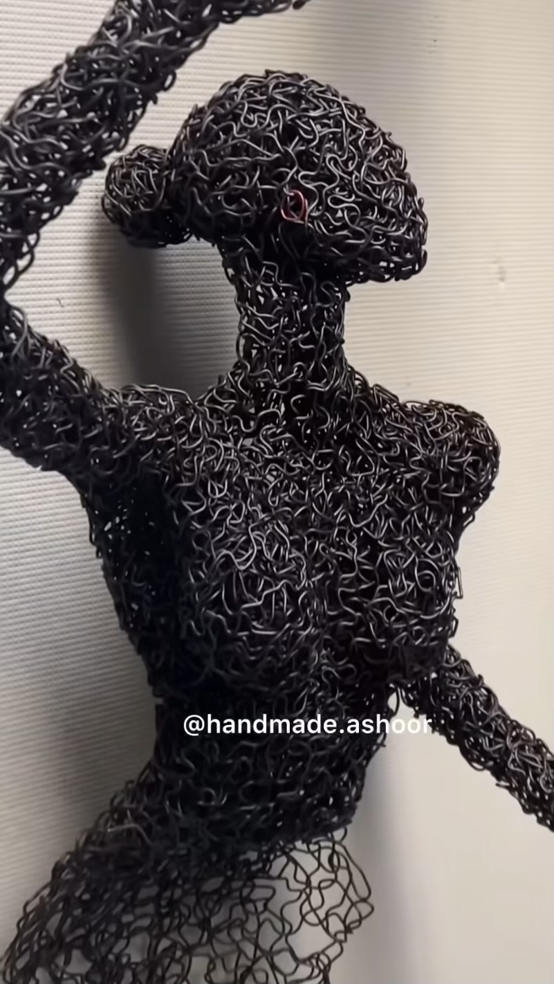یه عکس برام فرستاد گفت بسازشکف دستهاش رو به دیوار بود و نگاهش به دوربین. بعد ازینکه ساختم مجسمه رو برگردوندم پشت به دیوار و شد رقص سیاه