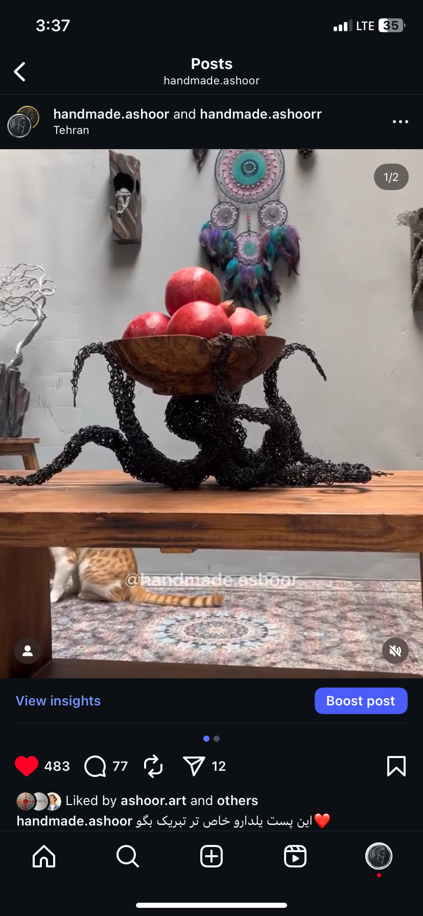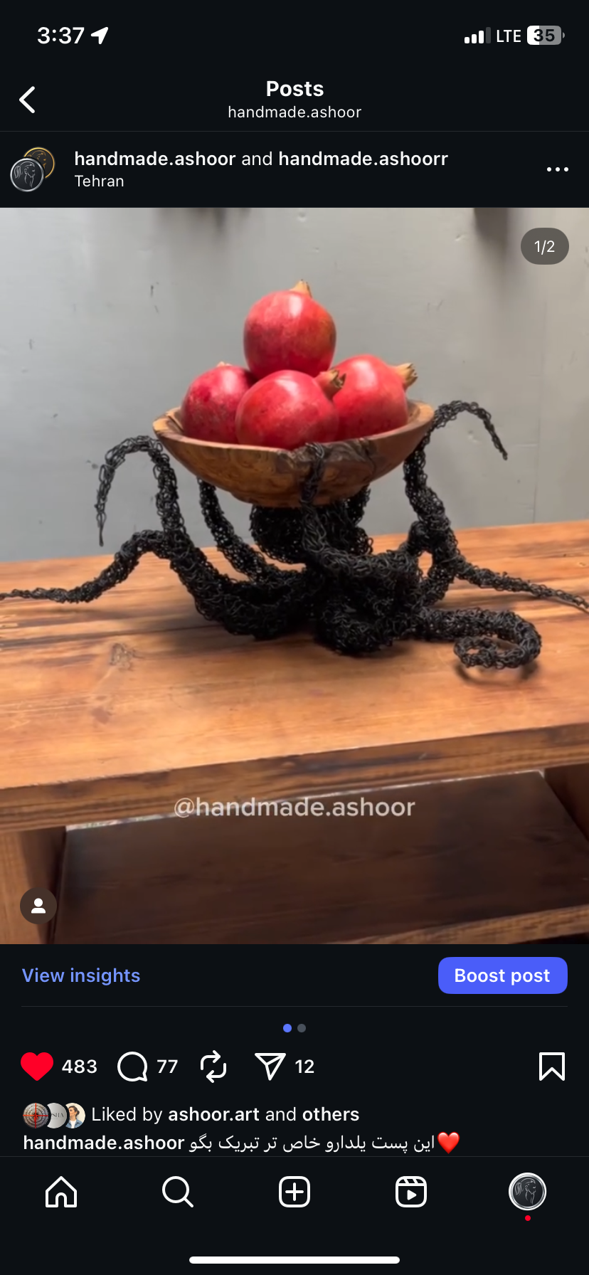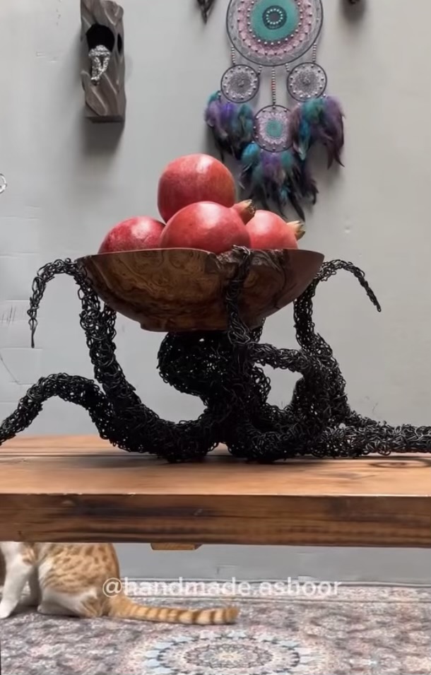 اختاپوسی بایک ظرف چوبی خراطی شده از ریشه درخت